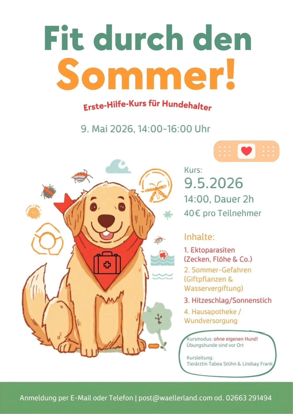 Der Sommer bringt nicht nur Sonne und schöne Spaziergänge, sondern auch einige Risiken für unsere Vierbeiner. In diesem praxisnahen Erste-Hilfe-Kurs erfährst du, wie du deinen Hund sicher durch die warme Jahreszeit begleitest und im Notfall richtig handelst.